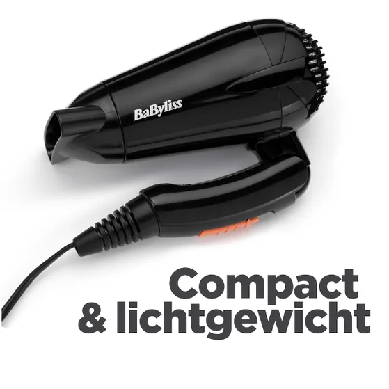 Met deze föhn ben je altijd verzekerd van verzorgd en gestyled haar. De Babyliss 5344E heeft een blaassnelheid van 79 km/uur, en dankzij het lichte gewicht en het opklapbare handvat is de föhn ideaal om mee te nemen op reis. Het 1,8 meter lange snoer is net zo lang als dat van een normale föhn: zo geniet je overal waar je bent van dezelfde functionaliteiten van een conventionele föhn.