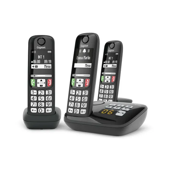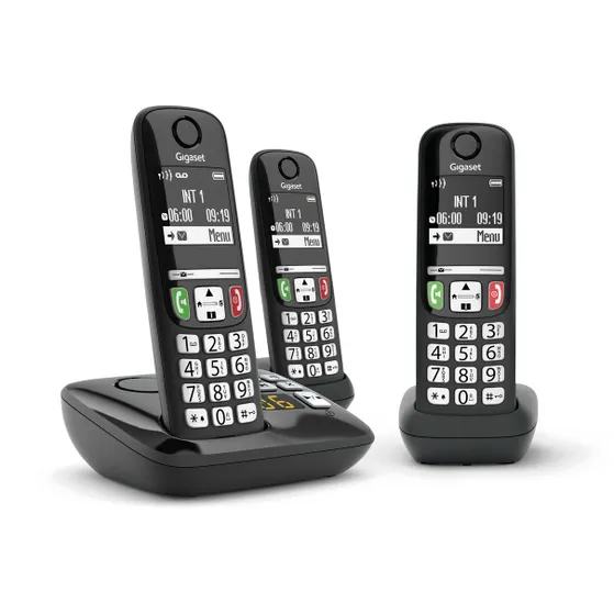 De Gigaset A735A Trio Zwart bestaat uit drie handsets met allen een verlicht, contrastrijk scherm en extra grote, eveneens verlichte toetsen. Hierdoor zijn de telefoons duidelijk afleesbaar en omdat ze ook nog eens zeer eenvoudig in gebruik zijn, is de set uitermate geschikt voor alle leeftijden.