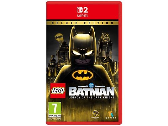 LEGO Batman: Legacy of the Dark Knight Deluxe Edition voor Nintendo Switch 2 van Warner Bros. Games biedt alles uit de standaardversie plus 3 extra content packs met 21 nieuwe Batsuits, 3 voertuigen en customisatiesets. Ervaar Batmans epische reis in open-world Gotham met geavanceerd combatsysteem en splitscreen coöp. 7 speelbare karakters en 100+ Batsuits in totaal. Vanaf 8 jaar. Speelduur: 25-30 uur.