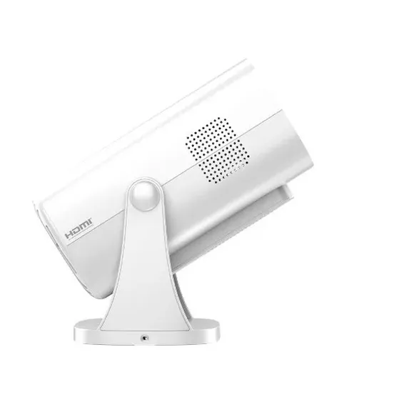 Met de 180 graden draaibare standaard richt je de projector eenvoudig op uiteenlopende oppervlakken. Dat maakt het makkelijker om het beeld aan te passen aan de ruimte of projectiehoogte.