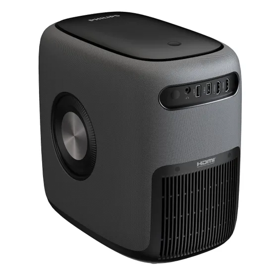 De Philips Philips NPX950/INT brengt films, series en andere content naar een groter formaat met slimme beeldcorrectie, ingebouwde audio en een projectieopstelling die snel klaar is voor gebruik.