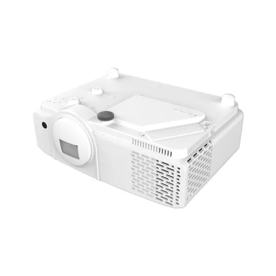 Met twee HDMI-poorten, een USB-aansluiting, RS232 en een 3,5 mm audio-uitgang sluit je de projector aan op uiteenlopende bronnen en externe geluidsoplossingen. Dat geeft meer vrijheid bij vaste en mobiele opstellingen.