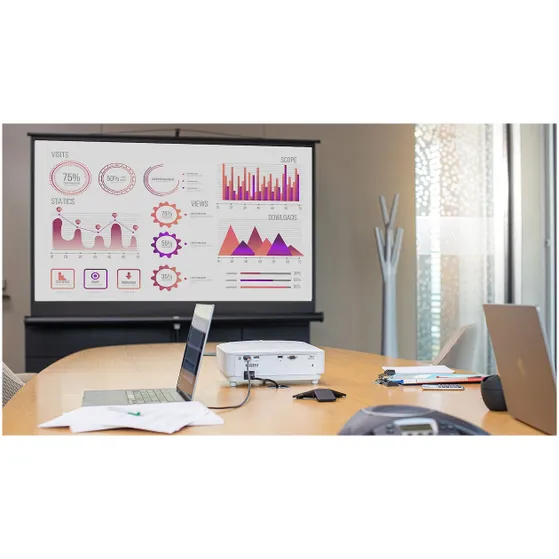 Deze projector toont content in Full HD-resolutie van 1920 x 1080 pixels. Daardoor blijven tekst, presentaties en videobeelden duidelijk zichtbaar en geschikt voor gebruik waarbij detail belangrijk is.