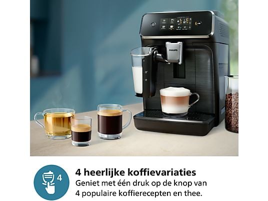 De Philips Series 2300 LatteGo EP2331/10 is een volautomatische espressomachine waarmee je in een handomdraai geniet van verse koffie. Zet met één druk op de knop een voorgeprogrammeerde koffie of pas je koffie eenvoudig naar wens aan. Met het LatteGo-systeem is zelfs koffie met een zijdezacht schuimlaagje een fluitje van een cent.