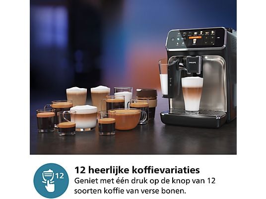 LatteGo-melksysteem, intuïtief display, 100% keramische molens, functie voor een extra shot, AquaClean-filter, 12 standen voor maalmolen, 12 koffievarianten, gebruikersprofielen |