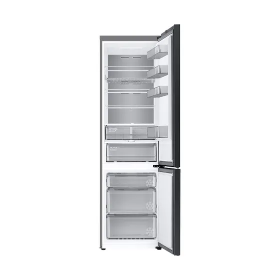 De Samsung RB38C7B5AB1/EF koel-vriescombinatie heeft een netto inhoud van 387 liter. Daarvan neemt het koelgedeelte 273 liter in en het vriesgedeelte 114 liter. De koel-vriescombinatie is 203 cm hoog en heeft een breedte van 59,5 cm, met een diepte van 60,8 cm. Deze koel-vriescombinatie heeft energielabel A. Het apparaat is voorzien van no frost zodat je het vriesgedeelte nooit hoeft te ontdooien.