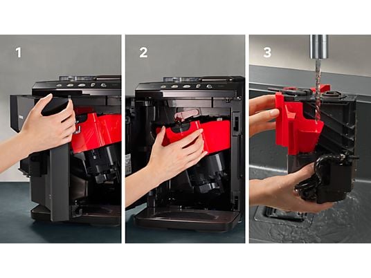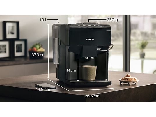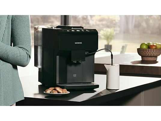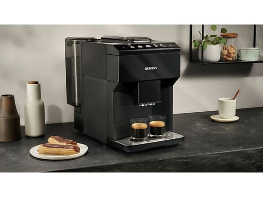 De EQ500 is met zijn stijlvolle zwarte behuizing een mooie aanvulling op ieder aanrecht. Het ontwerp is niet alleen mooi om te zien, maar ook functioneel. Zo zijn de koffieuitloop en melkopschuimer in hoogte verstelbaar, waardoor er zelfs hoge latteglazen onder passen. Het uitneembare waterreservoir van 1,9 liter is bovendien groot genoeg voor meerder kopjes. Ook aan het onderhoud is gedacht: het apparaat beschikt over een automatisch reinigings- en ontkalkingssysteem. En zie je op tegen het schoonmaken van het melksysteem? Niet nodig: dankzij AutoMilkClean wordt het melksysteem automatisch gereinigd na elke bereiding van een melkspecialiteit. Hoe fijn is dat!